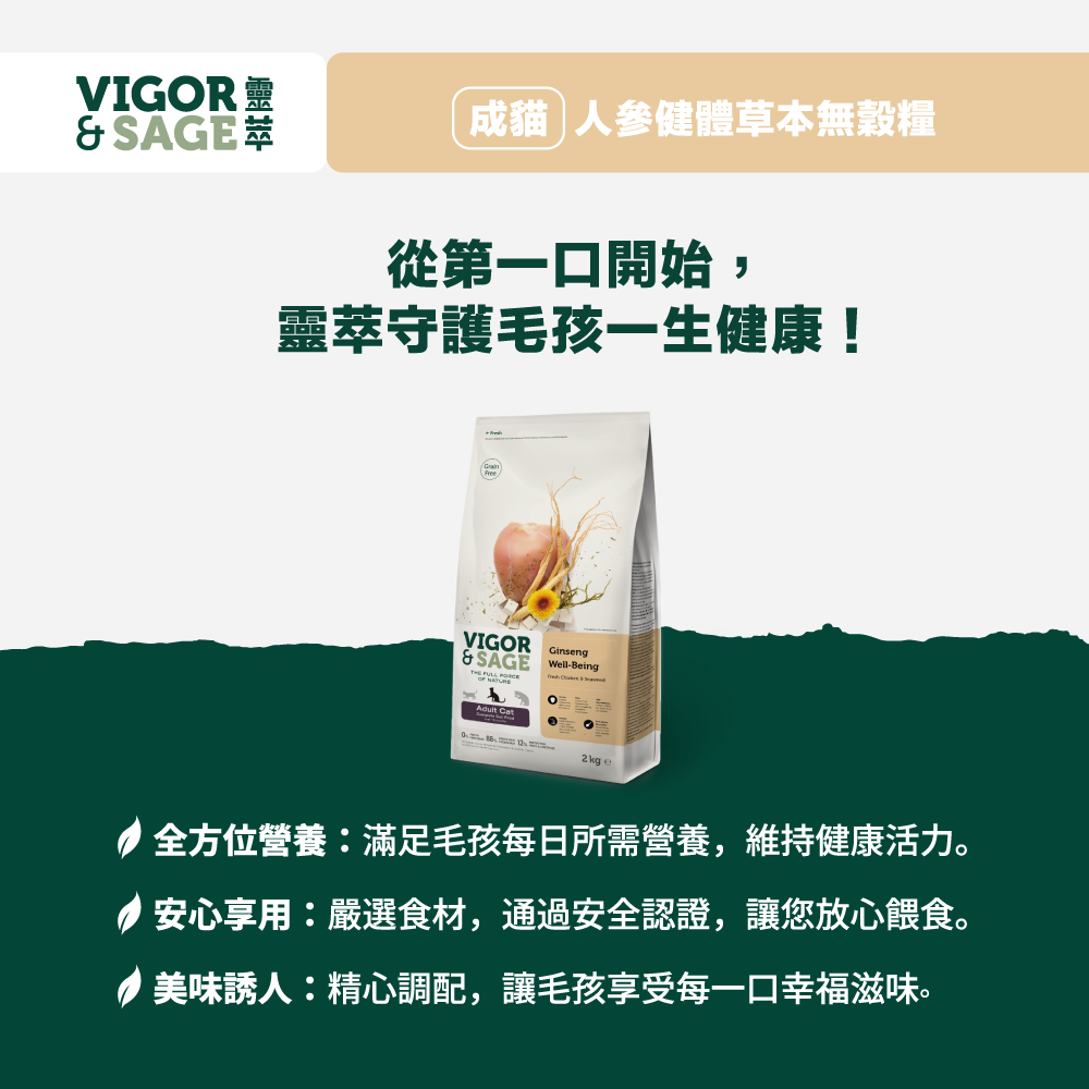 靈萃 成貓人參健體草本無穀糧 400g
